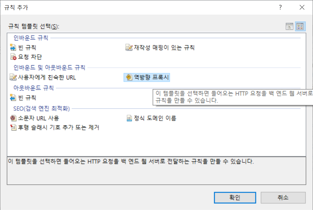 12. 역방향 프록시를 선택하고 확인. |