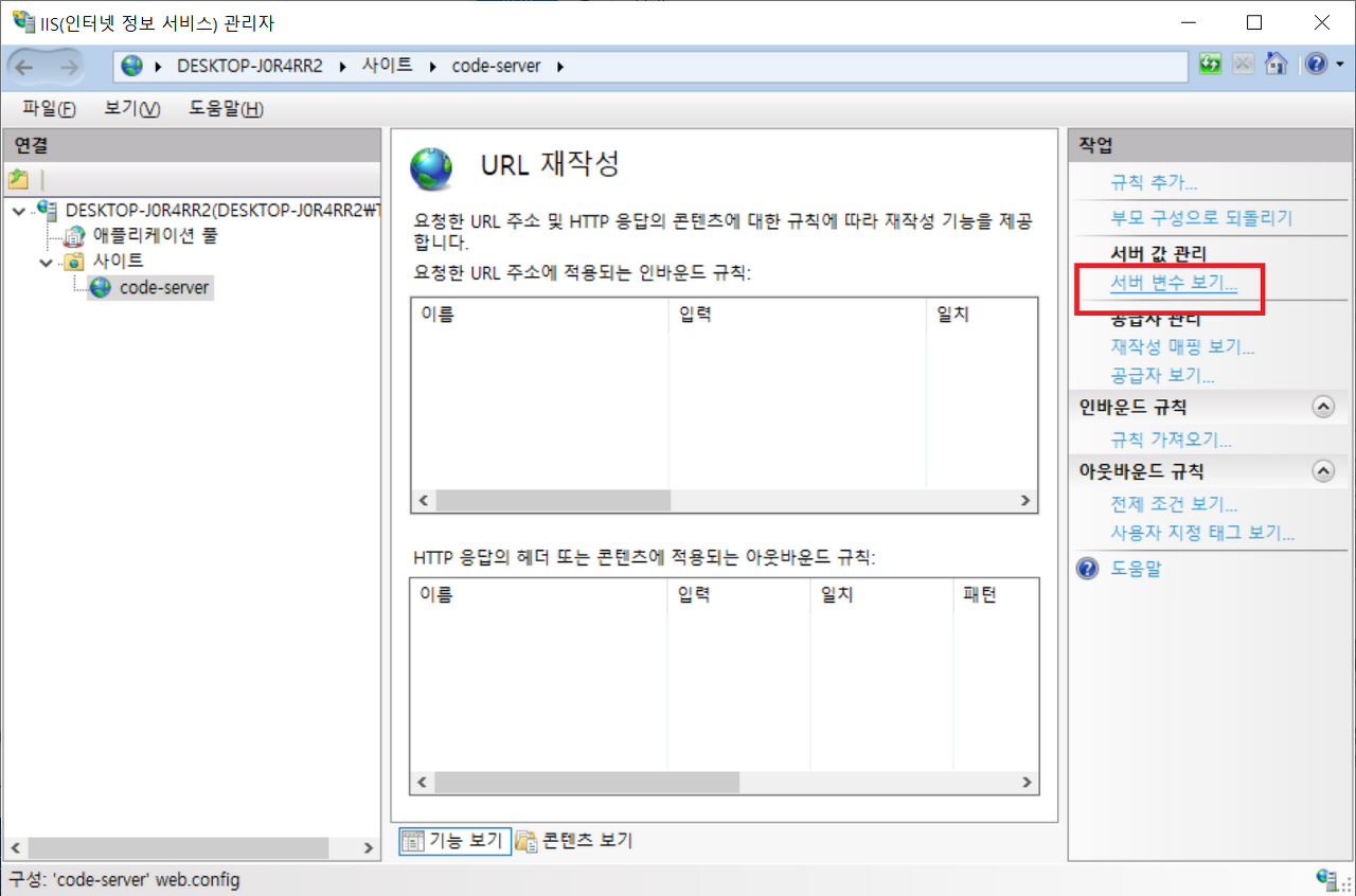 4. URL 재작성 서버 변수 추가