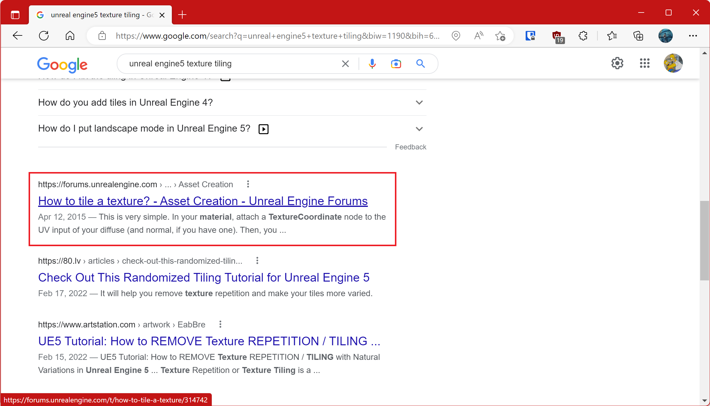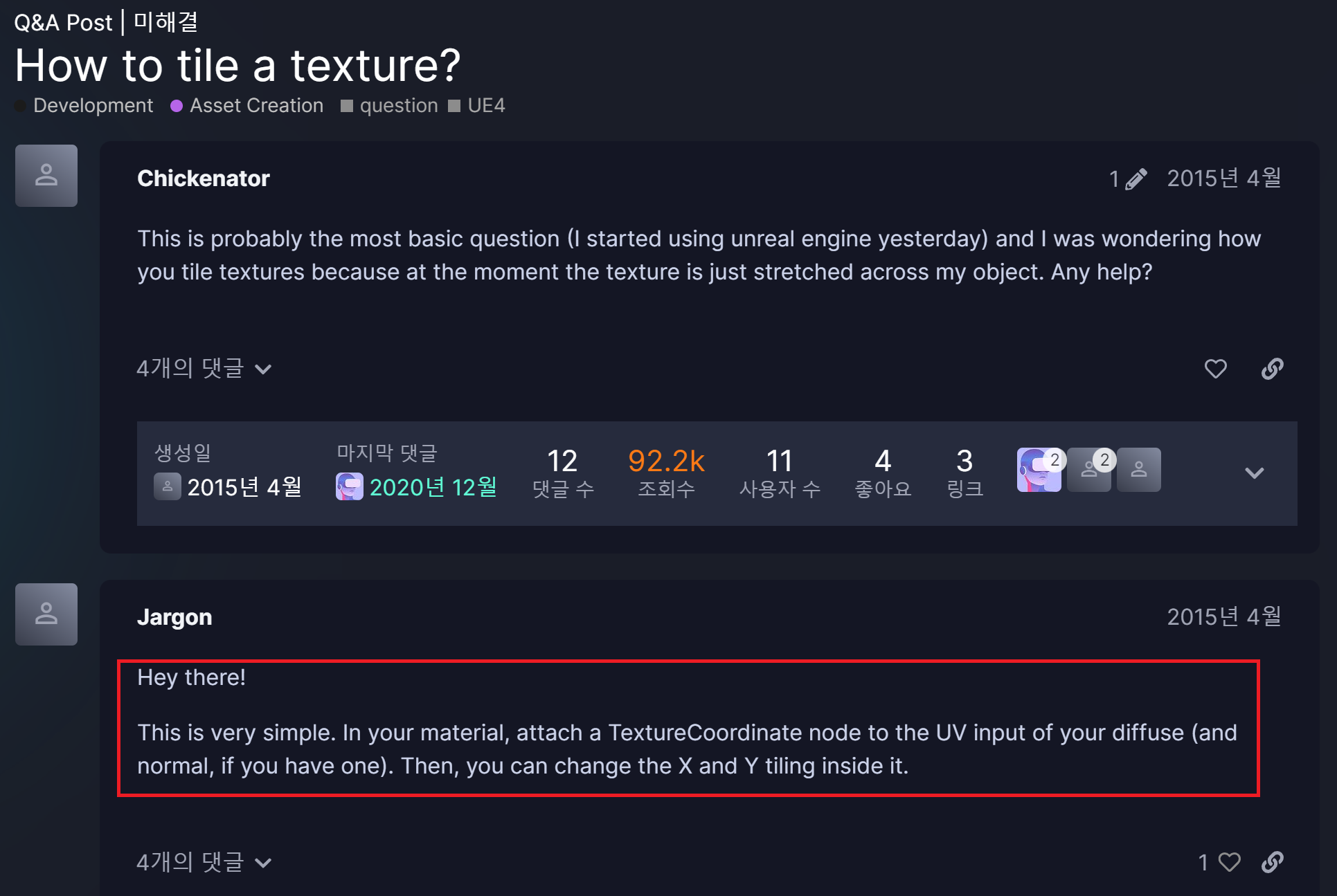 일단 '구글 신'을 믿고, 생각나는 키워드를 검색어로 조진다. 나는 'unreal engine5 texture tiling' 이라고 검색했다.