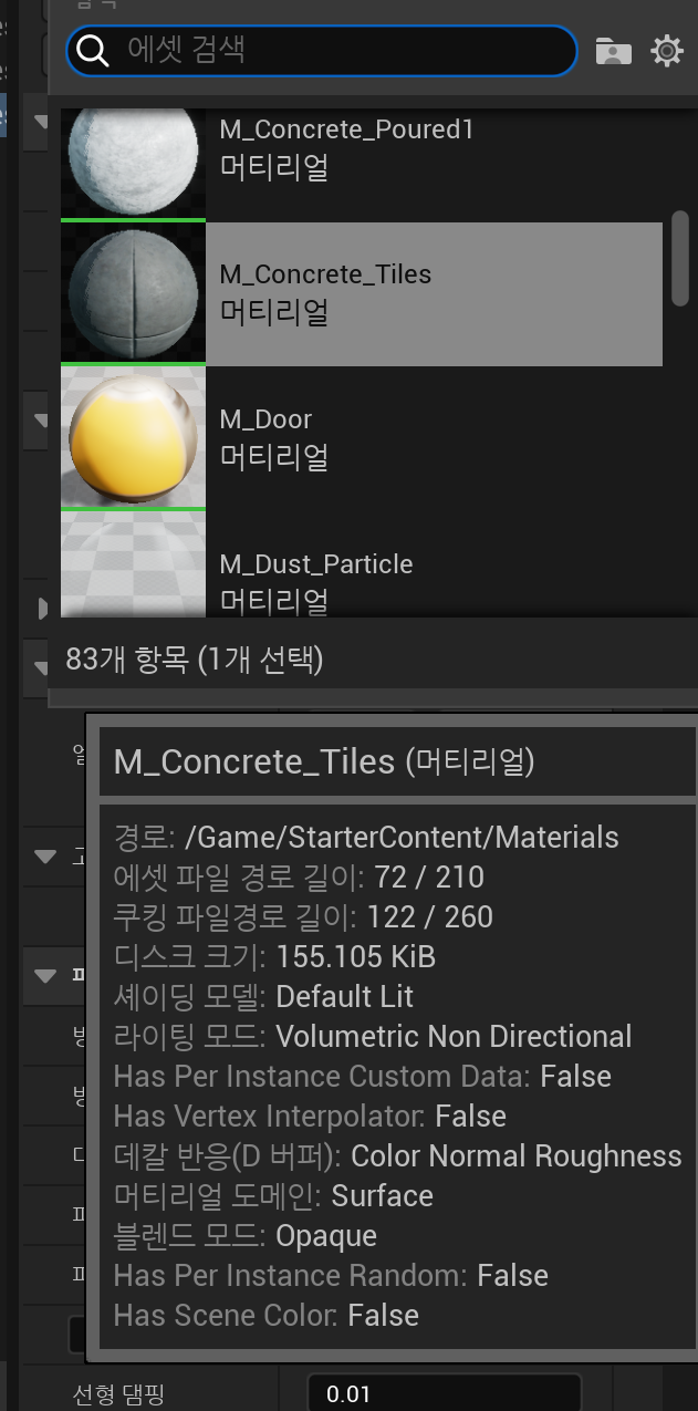 먼저, 기존 시작용 콘텐츠의 머티리얼을 복제하여 새로운 바닥용 머티리얼을 만든다.