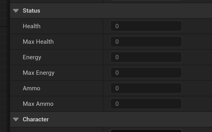 뭐 여튼 저튼 쨌든, 이제 블루프린트 에디터에서도 값이 잘 나타난다. 근데 값이 0인게 좀 불편하다.. 기본값을 채워넣어야겠다.