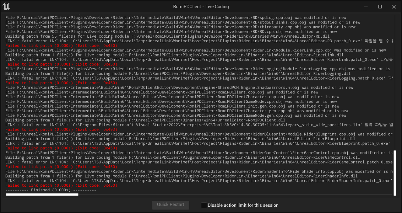 | [UE5] Live Coding 컴파일 fatal error LNK1104 오류 (0) | 2022.11.08 |